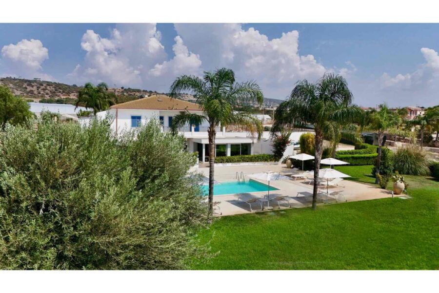 Blue Marina is a private villa in Marina di Ragusa, 2 km from the sea, with a private pool and Mediterranean garden, formed by 2 independent homes on the same ground floor, both opening onto the pool, sleeping up to 14. Shared villa life around the pool, with real privacy on demand: separate verandas and two complete living set-ups.