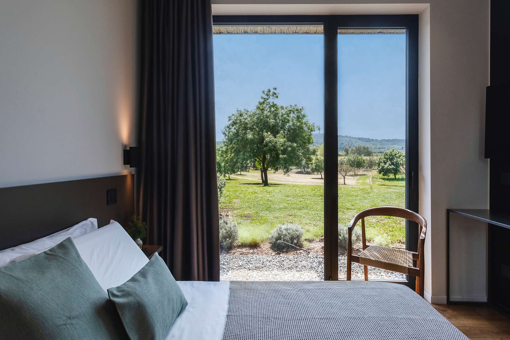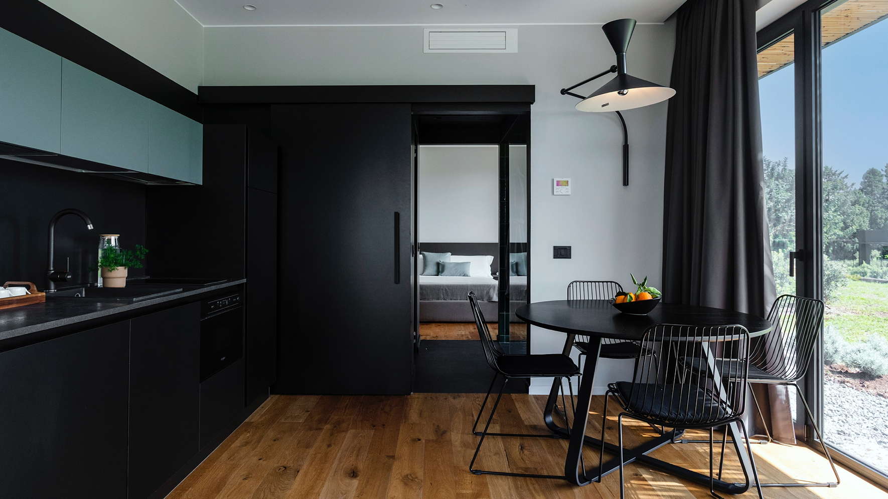 - Floor-to-ceiling windows with panoramic green views