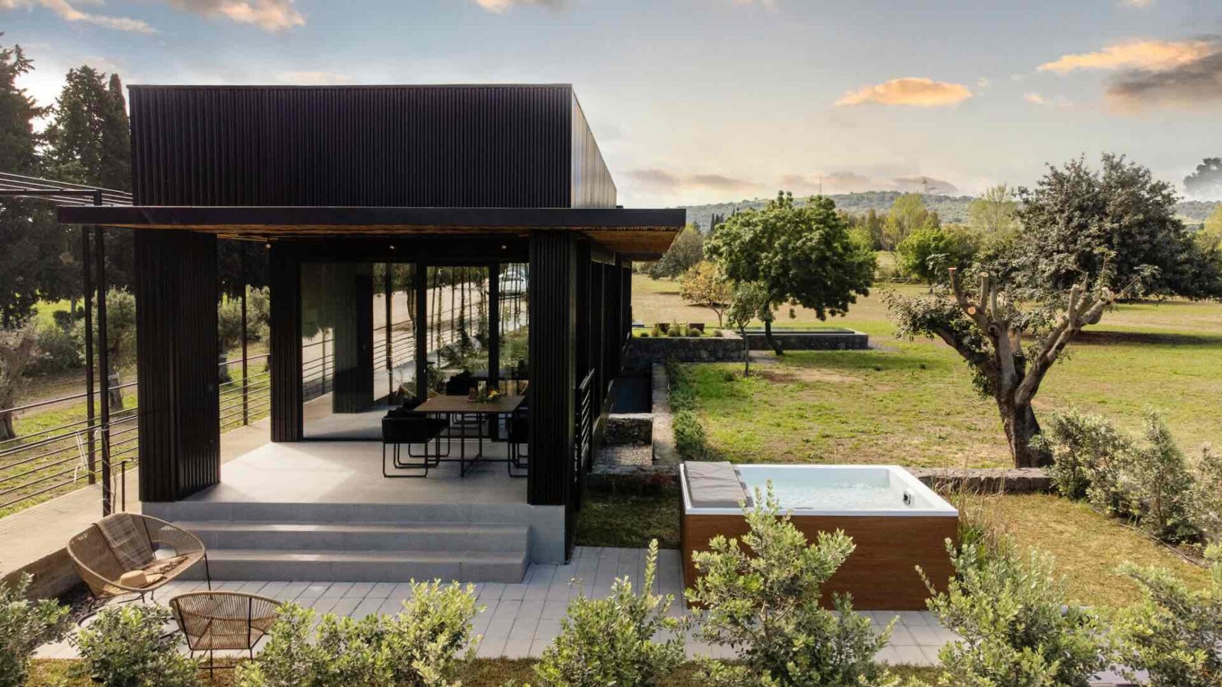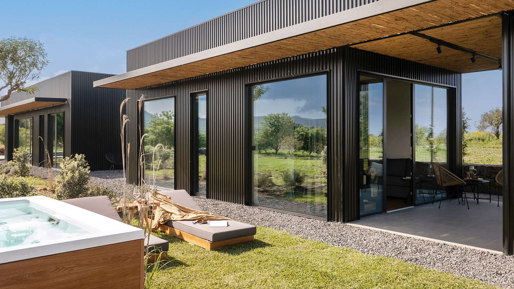 - Sleek contemporary architecture with natural materials