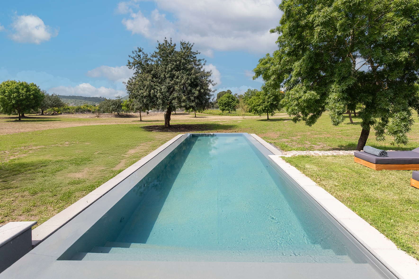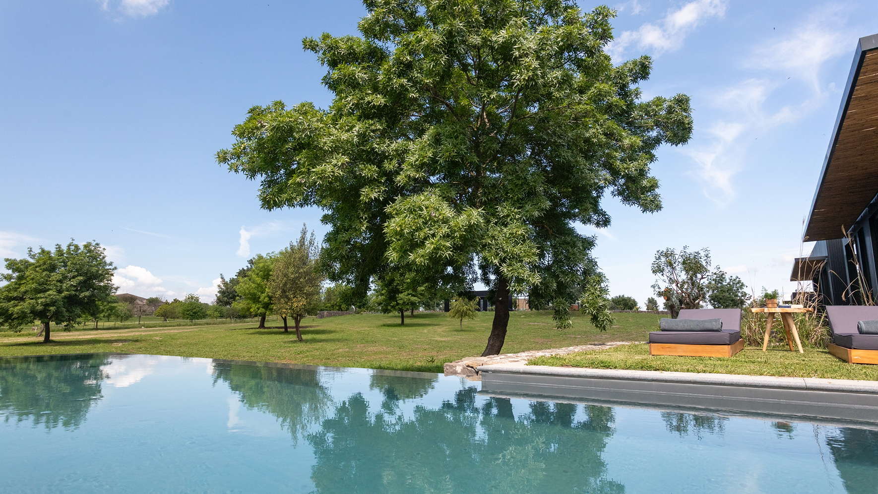 - Private swimming pool blending into the landscape and jacuzzi